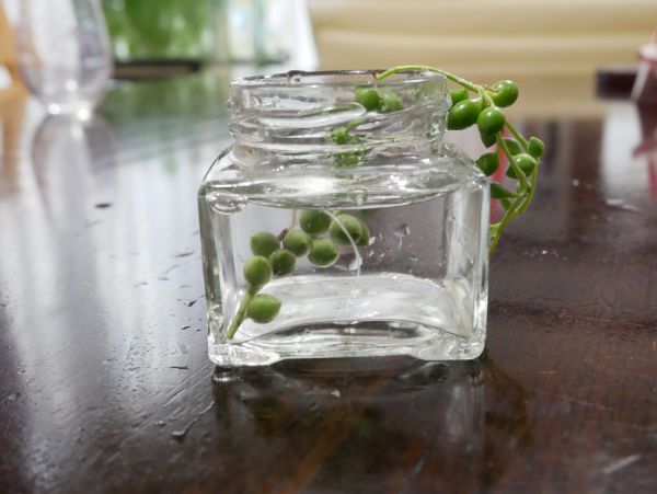 ビンなどに水を入れてグリーンネックレスの挿し穂の1/3くらいが水につかるように挿します。